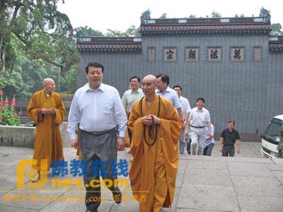 浙江省副省长龚正一行视察宁波市天童禅寺(图)