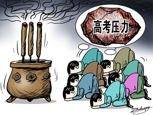高考临近,一些佛教名山迎来了一拨儿又一拨儿的高三老师,他们祈祷着今年高考自己带的学生能有个好“收成”。数月前,广西铁路某中学派出几位德高望重的老师作为代表,来到湖南衡阳的衡山烧香拜佛,祈求该校今年参加高考的学生顺顺利利,考出好成绩。每年派老师到庙里求神,已经成为这所学校的公开秘密。有资格代表学校求神拜佛成了这些高三教师的荣耀。(6月3号《中国青年报》)