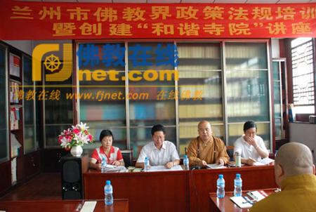 2009年6月17日上午,甘肃省兰州市佛教协会在白塔山法雨寺举办了兰州市佛教界政策法规、《禁毒法》宣传培训班暨创建“和谐寺院”讲座。