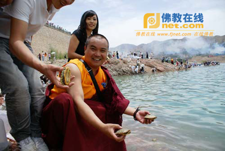 2009年6月13日,甘肃省兰州市五泉山嘛呢寺举行放生法会,嘛呢寺住持应巴法师主法。