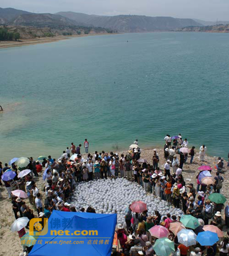 当天,四众弟子400多人在应巴法师带领下前往刘家峡水库举行放生活动,拯救、赦放鱼苗等计18万多尾。在放生仪式上,信众对赦放的生灵进行了皈依三宝和念佛回向。