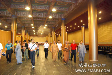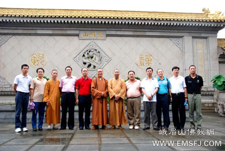 2009年6月19日下午,湖南省佛教协会副会长、南岳佛教协会会长、南岳福严寺方丈大岳法师,南岳佛教协会副会长、南岳藏经殿住持演明法师,南岳南台寺方丈怀辉法师,南岳佛教协会秘书长传法法师等佛教界人士与湖南省衡阳市副市长肖斌、衡阳市委统战部副部长陈群洲、衡阳市民宗局局长陈伟明等衡阳市相关领导一行到峨眉山大佛禅院参观考察。峨眉山佛教协会会长永寿法师、大佛禅院知客镇祥法师等热情接待了大岳法师一行。