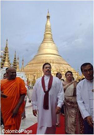 据《斯里兰卡政府官方新闻网》2009年6月16日报道,斯里兰卡总统马欣达·拉贾帕克萨和夫人施兰迪·拉贾帕克萨于6月15日至6月16日在缅甸进行正式国事访问期间,参观了缅甸仰光的著名历史胜景——瑞光大金塔(Shwedagon Pagoda),并出席了该寺为纪念在斯里兰卡打击恐怖组织战争中牺牲的烈士、祈祷兰卡国内和平而举办的佛教欢庆活动,缅甸宗教部长和众多高僧应邀出席了庆祝活动。