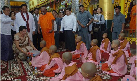 斯里兰卡总统国际佛教事务顾问Bodagama Chandima Thera博士证实,为庆祝斯里兰卡和缅甸两国建交60周年,有60名沙弥在欢庆活动上受了戒,拉贾帕克萨总统还亲自为这些沙弥赠送了僧袍。