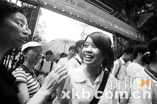■昨天,广州培正中学考点,考生们心情放松地走出考场。新快报记者夏世焱/摄