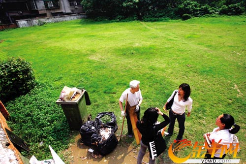 ,两栋10多层高的住宅楼之间夹着一块空地。除了与北边住宅楼接壤的一面以外,这块空地其余三面都砌起了两米高的围墙。围墙内,杂草丛生,有的草甚至与人的膝盖齐高。在空地上,随处堆放着木板、纸皮、饮料瓶等垃圾。