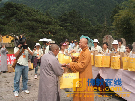 当事先得知九华山闵园景区部分比丘尼相当苦修时,参访团成员积极募捐善款,选购部分生活用品,并逐一分发到比丘尼手中。