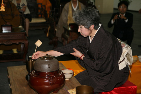 法会后,常藏法师引领日本友人参观了灵光寺综合楼,并于综合楼多功能厅三层日中双方进行“中日友好茶禅交流会”;中日双方分别精彩演绎了“茶禅一味”的茶道内涵。
