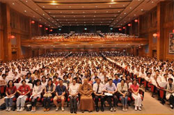 6月27日晚间7时30分,包括翰林学人、胜鬘书院、人间大学、小区大学及国际杰出青年禅学营等,一千多位学员齐聚如来殿四楼,倾听佛光山开山大师星云法师讲述“佛光山的组织与管理”。