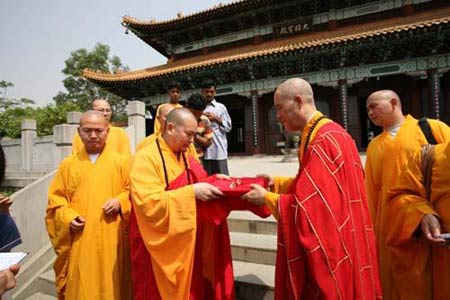 尼泊尔怀善方向赠与天门山寺怀樊方丈珍贵舍利子