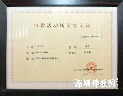广东深圳大华兴寺举行宗教活动场所登记证授证仪式