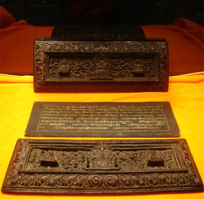 本次展览展出拉萨及尼泊尔手工镏金佛作品百余件和本教经版数张,其中达到文物级的经版就有20余张。