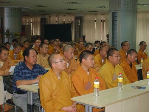 本次培训班是嘉定区佛教协会举办的第六期培训班,慧禅法师首先做了学习动员报告。他说,办培训班的目的是为了提高素质、培养人才,以便更好地弘法利生、服务社会。嘉定区佛教事业的起点虽然低,但是发展很快,因此,培养人才越发显得关键和重要。在世博会到来之际,我们举办这次讲座,是为了更好地了解世博、迎接世博、奉献世博。