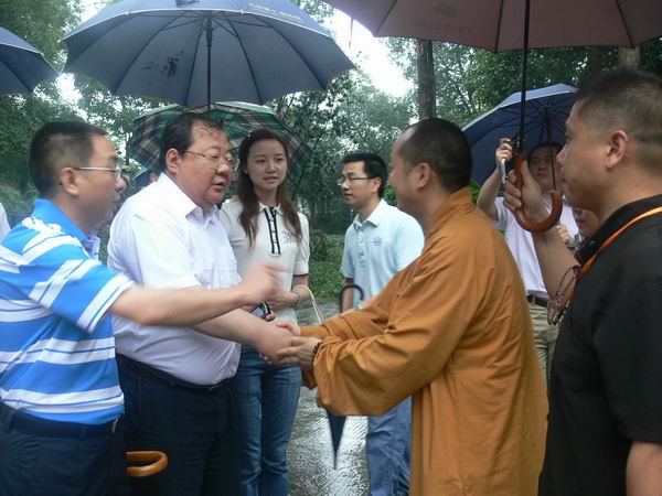 中国佛网讯:2009年6月20日9时40分,青海省吉狄马加副省长一行十余人来到重庆华岩寺进行参观考察,受到重庆华岩寺方丈道坚法师的热情接待。