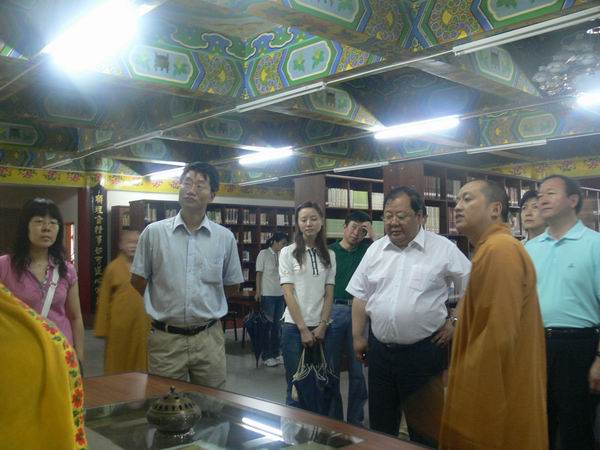 在道坚法师的陪同下,吉狄马加副省长一行参观了佛教图书管、佛教艺术馆,寺院殿堂及佛教博物馆。参观过程中,马加副省长赞叹寺中馆藏珍品完整、罕见,指出这些藏品不仅历史意义重大而且具有很高的艺术价值,对华岩寺在文物保护方面做出的工作给予充分肯定。并表示希望华岩寺的法师们努力精进研习佛教经典,让更多的人了解佛教、学习佛法。发扬佛教的慈悲精神努力为地方和国家的安定、和谐做贡献。