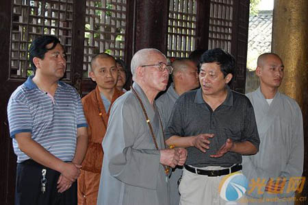 慧岳法师一行参观了净居寺大雄宝殿、天王殿、韦陀殿、观音殿和千年唐柏、历代碑碣等,并向大苏山文化研究会工作人员了解了净居寺的历史文化、保护现状和开发规划。慧岳法师表示,此行实现了他多年夙愿,将来也要为净居寺文化建设和传播做一些工作。苏锡凌、杨光平代表光山县委、县政府向慧岳法师介绍了净居寺基础设施建设情况,并表示政府对净居寺建设将会全力支持。