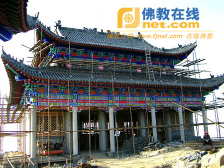 据悉,云台禅寺寺院改造工程现在进展顺利,寺院主要建筑之一的大雄宝殿已经进入彩绘阶段。