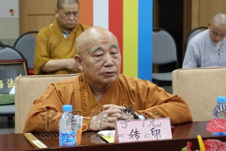 传印副院长在讲话中首先代表一诚院长对“越南政府代表团”的到来表示最热烈地欢迎!他谈到,中越两国佛教界渊源很早,“公元二世纪末,后汉时有学人名牟融,由中国广西的梧州(古名苍梧)奉老母移居越南河内地方(古名交址)。牟融奉佛虔诚,著《理惑论》三十七篇,显扬佛法要义。”中越两国的佛教同属大乘佛教,是法门兄弟,有着密不可分的关系。