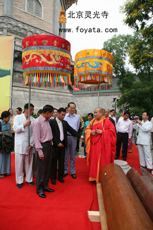 2009年6月16日上午,缅甸国家副主席貌埃一行在北京广化寺方丈怡学法师等人陪同下,到北京灵光寺参拜佛牙舍利。灵光寺方丈常藏法师、两序大众、佛乐团和护法居士五百余人在灵光寺山门前热情欢迎貌埃副主席一行。参拜结束之后,双方在灵光寺“迎客厅”举行了座谈。随后,双方互赠礼物。