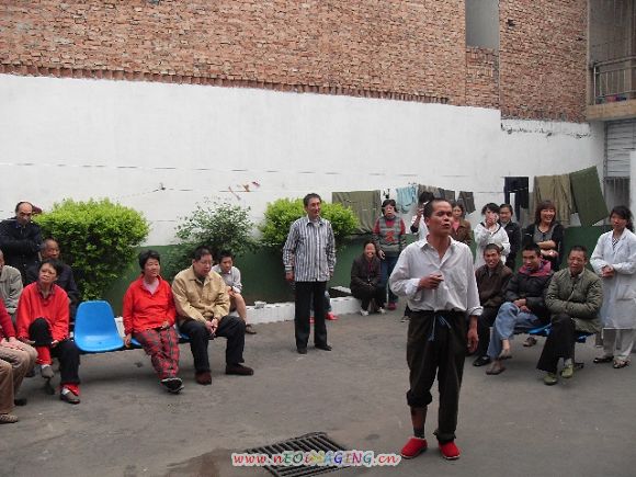 这些表演节目的病人当中给我印象最深的是,一个40多岁的男子。裤腿挽起来,裤腿一个高,一个低,给人感觉是个粗线条的人。没想到,他上去唱的第一首歌居然是“情锁”。我心里不禁一震,非常感慨:我们众生无始劫以来,就是为情、为欲所困、所牵,才不断在六道轮回的苦海中受苦。第二首歌他唱的是“常回家看看”,我听出他歌声中的思念――想家、想亲人。是啊,想想他们一个个活生生的人,多为年轻人、中年人。离开家人,孤独的生活在这里。生活枯燥乏味、单调重复,除了吃饭、睡觉、吃药就是看天上的太阳和星星,看不到希望,年复一年,多苦啊!难怪会把素不相识的我们当成了亲人,其实他们可能不需要什么太好的物质享受,只要能经常这样与别人聊聊天、唱唱歌,就已经很开心。看看他们脸上的笑容就知道他们今天有多开心,很多人脸上的表情都生动了起来。