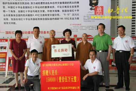 2009年6月3日,福建省厦门市南普陀慈善会普陀法师、通灵法师一行到云南省红十字会,参加了“厦门南普陀寺慈善会援建云南省宁蒗县草药坪村通电工程捐赠仪式”,南普陀慈善会通过云南省红十字会,捐赠云南省宁蒗县草药坪村15万元通电工程款。捐赠仪式上,普陀法师强调:要把这笔慈善款落实到位,尽快完成草药坪村通电工程。