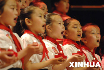 2009年5月25日,小学生在表演诗朗诵。新华社记者 丁海涛 摄