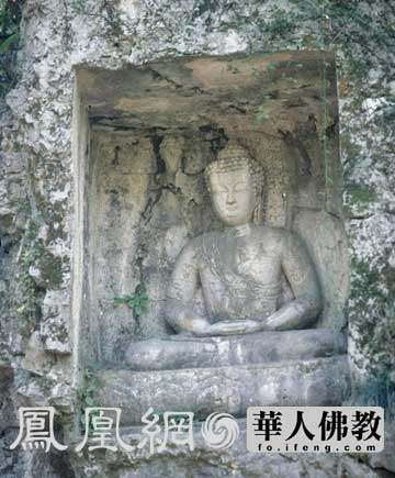 灵隐寺旁的飞来峰,也是杭州的名胜,是灵隐地区的主要风景点。飞来峰不仅风景美,而且是我国南方古代古窟艺术的重要地区之一。在青林洞、玉乳洞、龙泓洞、射阳洞以及沿溪涧的悬崖峭壁上,有五代至宋、元年间的石刻造像330余尊。其中最引人注目的,要数那喜笑颜开、袒腹露胸的弥勒佛,这是飞来峰石窟中最大的造像,为宋代造像艺术的代表作,具有较高的艺术价值。