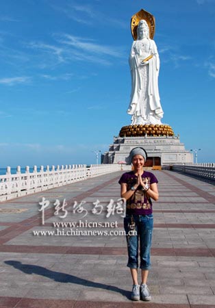 2009年6月9日下午,影星关宝慧和曹曦文到海南三亚南山景区参观游览。