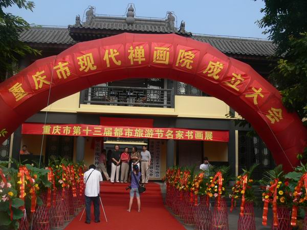中国佛网讯:2009年6月27日,重庆市现代禅画院成立大会在重庆华岩寺隆重举行,重庆市政协原副主席窦瑞华、重庆市旅游局常务副局长孙逸民、九龙坡区区委常委、组织部长叶建华、九龙坡区旅游局局长邹玉民、重庆华岩寺方丈道坚法师等相关领导参加了此次大会。