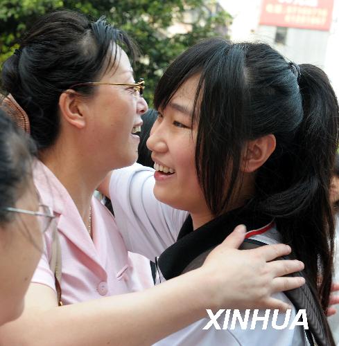 6月7日,广州市109中学的考生李紫薇(右)与前来送考的老师热情相拥。当日,2009年全国普通高校招生全国统一考试拉开帷幕,在广州市广铁一中考点外,送考老师与考生之间展现出浓浓的师生情谊。新华社记者 刘大伟 摄 教师子女教育缘何“灯下黑”