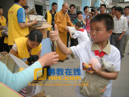 2009年6月1日下午,江西省东林慈善功德会的50余名志愿者在会长镜义法师的带领下,和九江博爱聋人学校的百余名孩子一起,举行了庆六一联欢活动,并为孩子们送去了衣服、食品、文具等节日的问候。