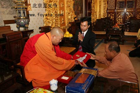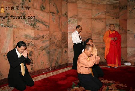 2009年5月25日上午,率领缅甸林业代表团一行来华访问的缅甸林业部部长登昂准将到北京灵光寺参拜佛牙舍利。