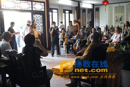 在正慈法师的陪同下,嘉宾们参观了寺院各个殿堂,并进行了亲切座谈。