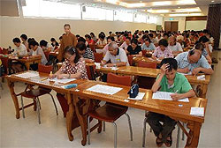 台中、彰化、南投、云林、嘉义等5个中部县市地区,近2个月来掀起了一股“佛学热”。不论男女老少,人手一本《佛学会考题库》,利用业余时间阅读,准备参加由佛光山中区各道场联合举办的“2009年佛光山中区联合佛学会考”。