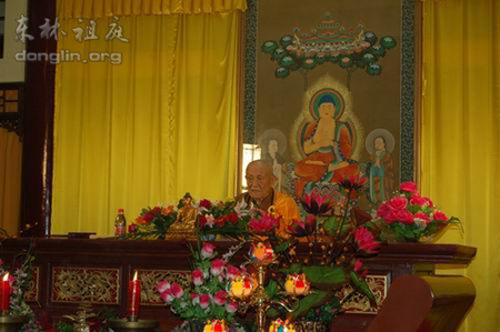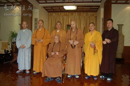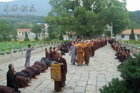 2009年6月29日上午,95岁高龄的梦参长老到江西省东林寺为大众开示“念佛与普贤十大愿王”。东林寺代住持大安法师、首座本通法师、监院道元法师、大知客德空法师带领两序大众在山门列队迎接梦参长老。