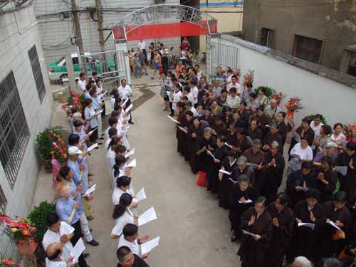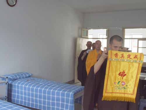 东林寺的师父们对医院科室病房等处,都施以佛法的甘霖,令一滴遍十方,令此坛场悉清净。
