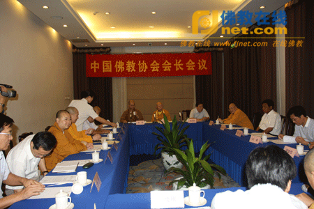 2009年7月22日下午,中国佛教协会会长会议在北京前门饭店举行。中国佛教协会一诚会长、学诚副会长兼秘书长,净慧副会长、圣辉副会长、策墨林副会长、永信副会长、戒忍副会长、觉醒副会长、陈文尧副秘书长、蘧俊忠副秘书长、张琳副秘书长,教务部宗家顺主任、清远副主任,办公室张厚荣主任、刘宇副主任,《法音》编辑部卢洵主任、陈星桥先生等出席了会议。