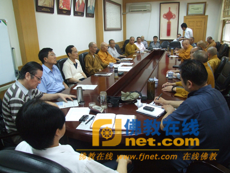 中佛协会长一诚长老,中佛协副秘书长蘧俊忠、陈文尧、张琳和各部室负责人参加会议,中佛协副会长兼秘书长学诚法师主持会议。