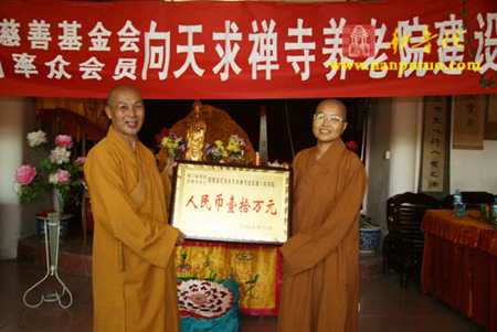 2009年6月27日,福建厦门南普陀寺慈善会的普陀法师与静仁法师到湖北省黄冈市浠水县天求禅寺,为该寺正在筹建的佛教养老院捐赠10万元善款。