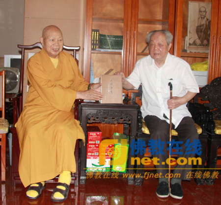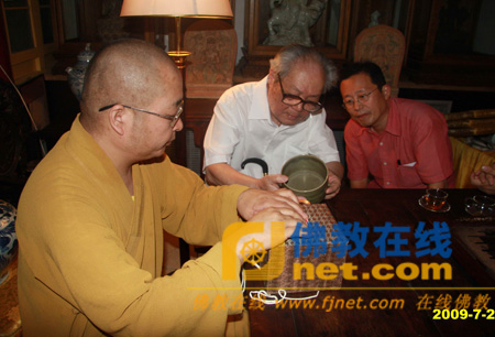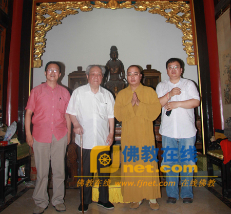 2009年7月2日上午,著名历史考古文物鉴赏家、红学艺术家冯其庸先生,在国家宗教局外事司副司长刘金光、中国佛教图书文物馆常务副馆长圆持法师等人陪同下,到北京法源寺参访。