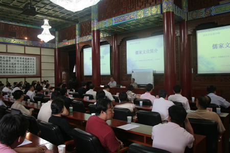 方尔加教授用平实睿智、幽默风趣的语言,引经据典,从四个方面对儒家文化的精髓作了深入解读:一是儒家概论,主要介绍了“儒”和“儒家”的含义,儒家的历史贡献和重要性;二是儒家的修身之道,主要介绍儒家自我反省、自我批评和知行合一的修身之道;三是儒家的治国安邦之道,主要是介绍儒家非常注重发挥文化的作用;四是对儒家的核心思想---中庸作了独到的阐释。方教授还结合许多实例对儒家文化作了符合时代发展要求的阐释。报告结束后,齐晓飞副局长作了精彩总结。他指出,当前全党全国上下正在全面贯彻落实科学发展观,对内构建和谐社会,对外推动共建和谐世界,中华民族正在为实现全面复兴而努力奋斗。实现中华民族的伟大复兴,除了经济快速发展,也离不开文化软实力的大力支持,也需要一场新的“文化复兴”。儒家文化作为中华民族优秀文化传统的一个重要组成部分,几千年来为中华文明的长久延续提供了最有生命力的支撑,在新的历史条件下,如何实现回归与超越,为中华民族的伟大复兴注入新的精神力量,是一个值得深入思考的问题。他希望大家在积极做好新形势下的宗教工作的同时,充分发挥我国宗教优秀传统文化的优势,为构建和谐社会,实现中华民族的“文化复兴”作出积极的贡献。