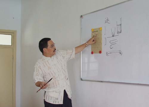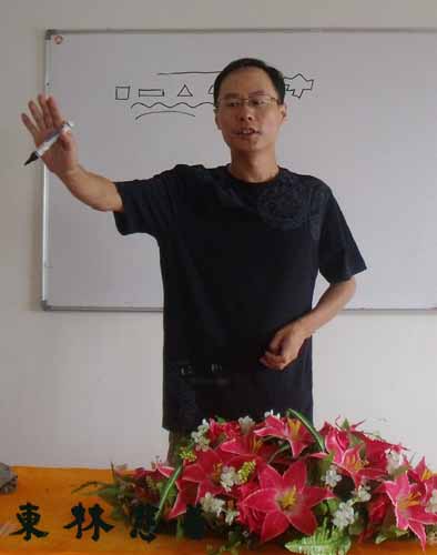 7月21日下午,田立云老师教授书法。他耐心细致,以用笔为重点,深入浅出的讲述了书写姿势、执笔方法等基础要领,间或很巧妙的把基础佛法也渗透到教学语言中。让学生学书法的同时,也受到佛法的熏习。