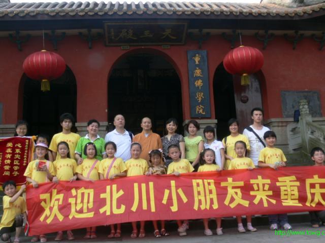 5.12大地震之后,受到惊吓的衣衫褴褛、饥肠辘辘的北川县陈家坝孩子流浪到了绵阳,9月后返回家乡。回家后,看不见了学校,找不到了家,还有的永远看不到有些亲人了。对一些失去亲人的孩子来说,无论是经济上还是思想上,都无法回到从前。这时,他们听到了一个远隔千里、从未听过的名字——“华岩寺”和重庆华岩文教基金会。来的有出家人,也有满怀爱心的善良之人。华岩文教基金会理事长道坚法师亲自带领基金成员,以“不愿自己得安乐,但愿众生能离苦”的慈悲济世的精神,十多次来到陈家坝,誓与灾民同甘苦。如今的北川陈家坝只要看见有华岩文教基金会的义工的身影,当地的人们就对他特别的亲热,像自己家人中的一份子一样,因为基金会也想家人一样关心着他们。基金会发起了呼吁更多社会爱心人士关心北川陈家坝的师生的活动,使师生们重拾对生活的希望。