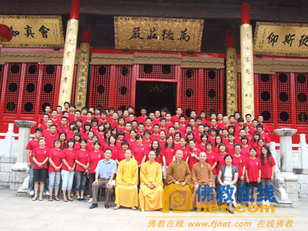 2009年7月27日,江苏省南京市栖霞古寺第五届佛教夏令营圆满结营。栖霞古寺方丈隆相法师、曙光法师、谛如法师、净诠法师、净善法师与所有营员在毗卢宝殿前合影。