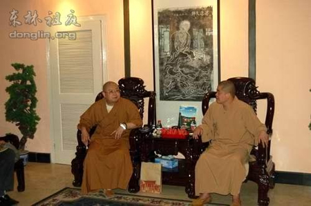 2009年7月13日上午,湖北省佛教协会会长、东方山弘化禅寺方丈正慈法师一行9人到江西省庐山东林寺参访,受到东林寺监院道元法师的热情接待。