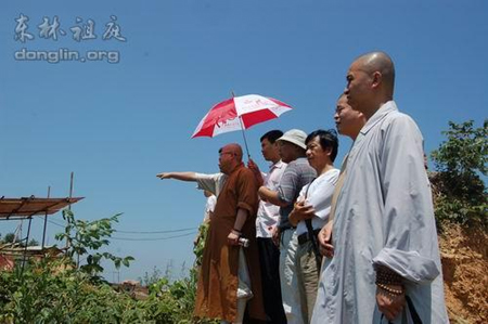 正慈法师一行在道元法师的陪同下参观了东林大佛的建设工地,并仔细听取了东林大佛建设指挥部总指挥密可水居士、主任李宏伟居士关于东林大佛工程立项、审批、项目领导机构的组织构成、土地划拨、佛像设计、铸造、抗震抗风测试、成本、中轴线设计建设、大佛平台勘探等的详细介绍。随后正慈法师一行还实地考察了大佛中轴线和大佛基座的建设情况。