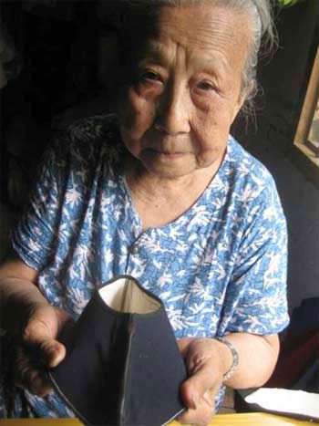 刘锡珍老人展示僧鞋