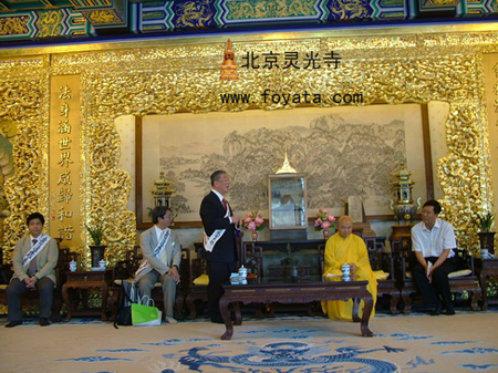 2009年7月14日上午10:30分,以长谷川裕史教区长为团长的日本立正佼成会东京教区多摩地区第五次中国佛教祖迹参拜团一行41人,到北京灵光寺参访,瞻仰礼拜佛牙舍利。