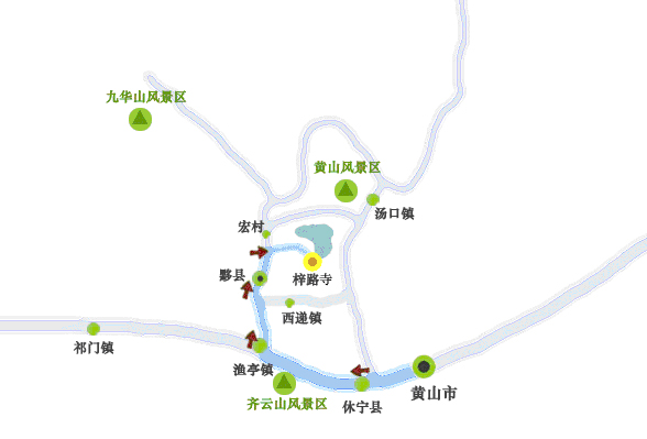 2)路对面坐6路或9路到屯溪汽车站。换坐到黟县的公交车,再转黟县——宏村。