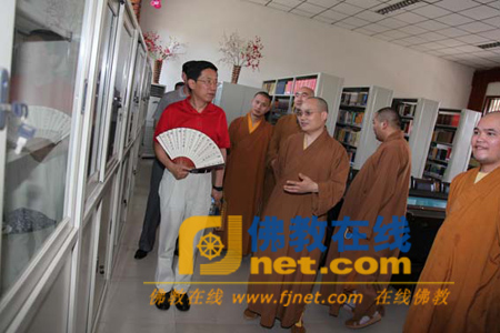 蒋坚永副局长一行参观了法门寺文化景区,法门寺真身宝塔、大雄宝殿,法门寺佛学院图书馆、电教室、教室、操场等。然后,法门寺监院智超法师率领寺院全体执事热烈欢迎蒋坚永副局长一行的到来。贤空法师向蒋坚永副局长汇报了法门寺佛院建院4年多来的工作成绩、经验及存在的问题,并提出了需要上级部门帮助解决的困难。智超法师在发言中就法门寺目前的境遇和办学中的经费等问题作了反映。